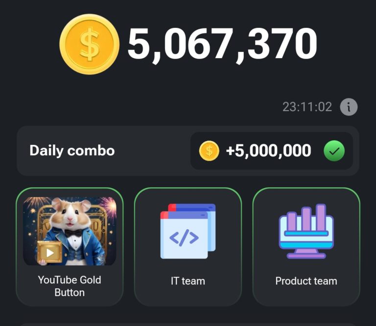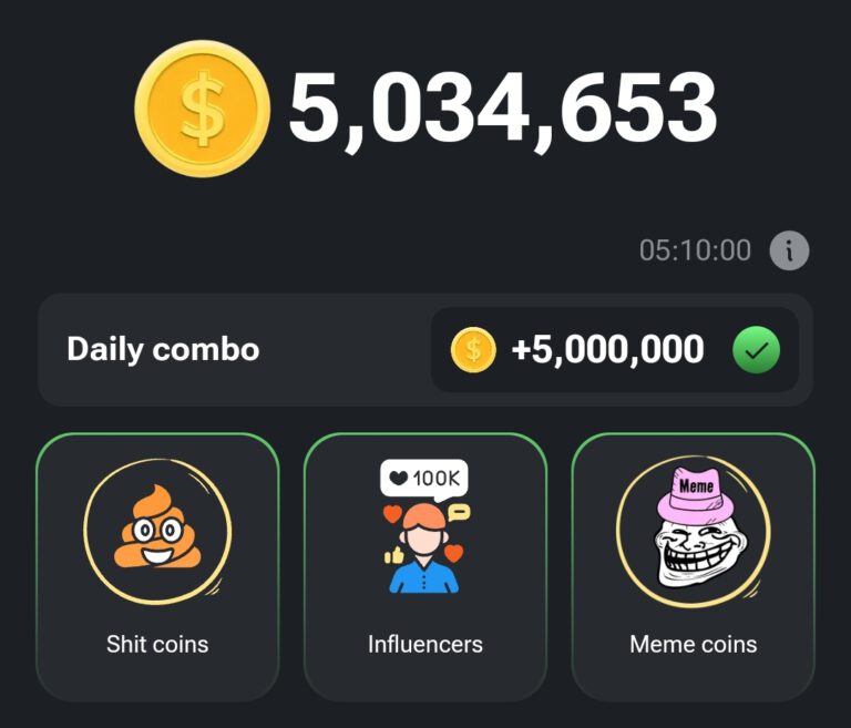 Verdien maar liefst 5.000.000 coins extra elke dag, met de Daily Combo. Hoe werkt het, je moet 3 kaarten spaten bij mining. Elke dag zijn dit weer 3 andere kaarten. Die kaarten zijn dan voor iedereen hetzelfde, je kunt dus…